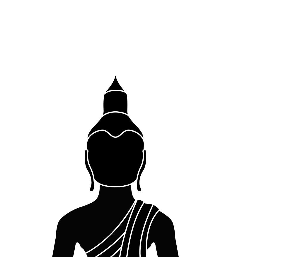 Un demi-cercle avec un Bouddha et une fleur de lotus.