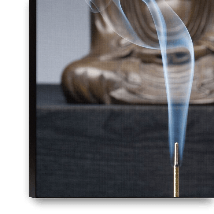 À propos de ‘Bouddha en bronze derrière la fumée de l'encens brûlant’ par Frans Rombout