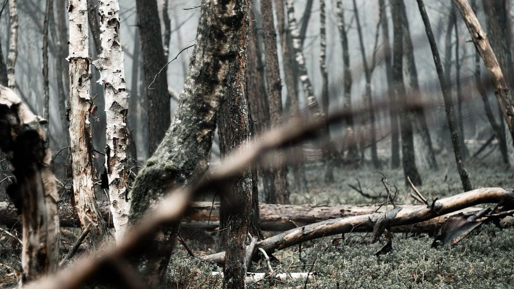 Bouleaux dans la brume. Le bouleau est une espèce d'arbre ancienne qui est présente aux Pays-Bas depuis la nuit des temps. Photographié aux Pays-Bas, sur la montagne mystique de Holterberg. Parfait pour un intérieur rustique et terreux. Un beau morceau de la nature néerlandaise.