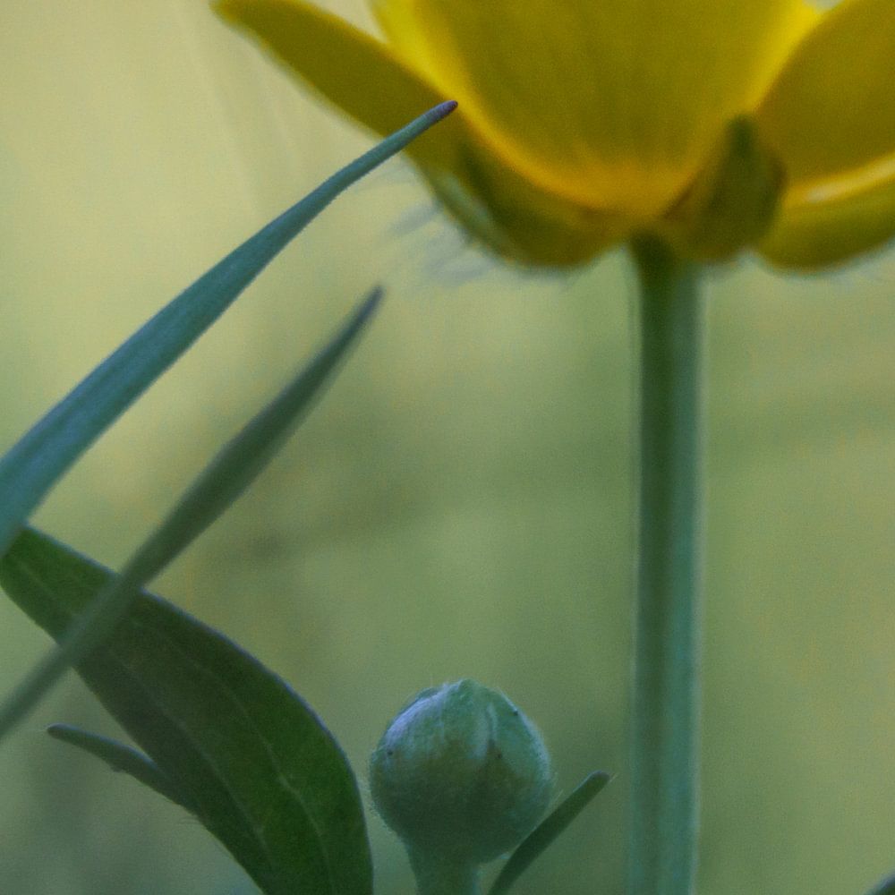 Dans l'herbe haute se trouve le petit bouton d'or. Il est presque invisible si l'on marche longtemps, mais allongé dans l'herbe, il apparaît de manière évidente.