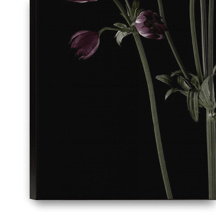 Achetez cette œuvre d'art florale Boutons violets de Zeeland sur fond noir par Carine Belzon sur toile, aluminium, ArtFrame ou photographie (encadrée), impression d'art en haute qualité et tout format.
