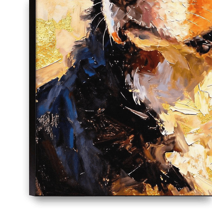 Le bouvier bernois domine la toile avec une force tranquille et une douce chaleur, une présence à la fois noble et tendre. Dans The Dogs – The Faithful Heart Collection, des coups de couteau expressifs superposent des textures riches sur le pelage épais et tricolore, apportant profondeur et vie à chaque courbe musculaire et chaque boucle de fourrure. De légères touches de lumière soulignent les contours du visage et des épaules, tandis que des ombres douces enveloppent la silhouette, évoquant la tranquillité et une élégance sereine et posée. La peinture capture la loyauté et l'intelligence calme caractéristiques de la race, invitant le spectateur à une rencontre intime avec un cœur à la fois inébranlable et tendre. Sous les textures vibrantes se cache une énergie tranquille, un rythme de mouvement et d'immobilité qui témoigne de la dévotion indéfectible du bouvier bernois. Le regard expressif, tendre mais vigilant, devient le centre émotionnel, témoignage d'une compagnie à la fois protectrice et affectueuse. Ce portrait célèbre la loyauté comme une force vivante, un lien de chaleur, de force et de grâce, rendu par des couches de lumière, de texture et un art sophistiqué qui honorent un cœur fidèle.