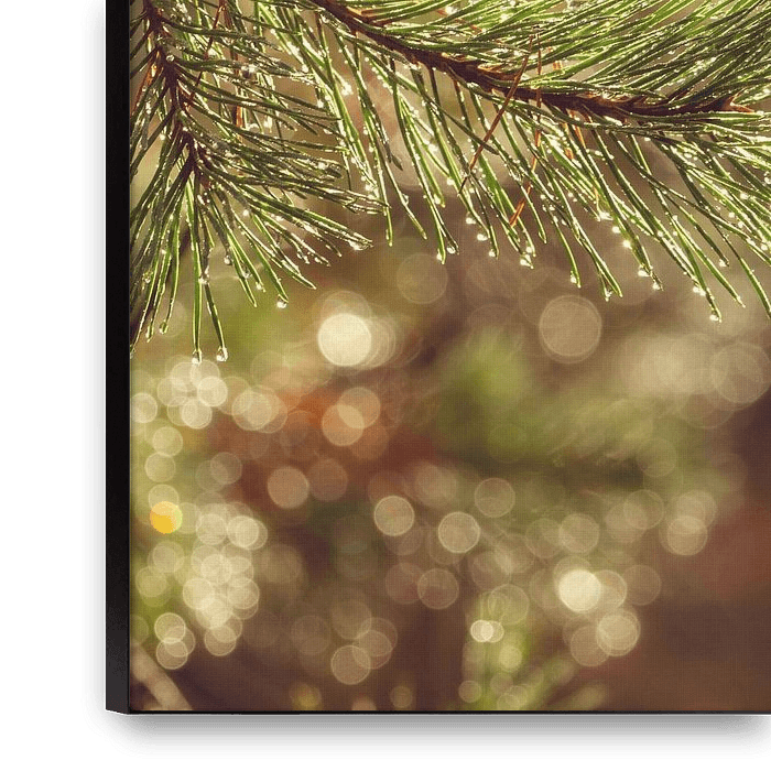 Cette image d'une branche de pin avec beaucoup de lumières en arrière-plan se combine parfaitement dans un diptyque avec l'image Branche de pin et lumières partie 2 dans mon portfolio.