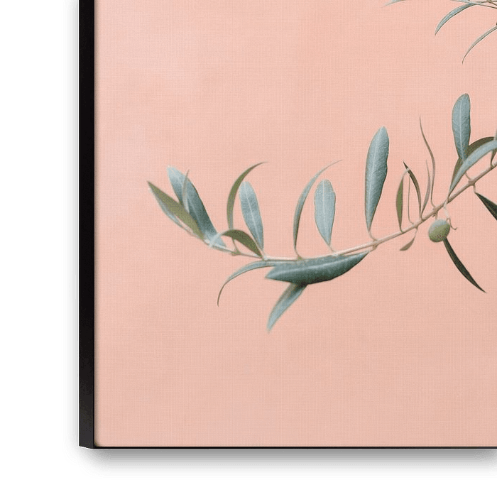 J'ai photographié ces branches d'olivier à Rome, la capitale de l'Italie. J'adore la couleur verte de cet olivier contre le mur de couleur corail. Cet imprimé s'intègre bien dans un intérieur botanique.