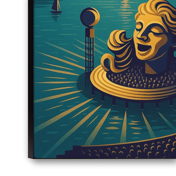 Cette affiche Art déco de Bregenz capture l'esprit culturel de la ville autrichienne située au bord du lac de Constance. L'œuvre d'art représente l'emblématique scène flottante de l'opéra, avec sa pièce maîtresse sculpturale dramatique située sur des eaux scintillantes et des pics alpins majestueux. Des rayons de soleil stylisés s'étendent sur le lac, soulignant le mélange unique de beauté naturelle et de sophistication culturelle qui définit Bregenz. Réalisée dans le style d'une affiche de voyage vintage, l'œuvre utilise des bleus audacieux, des reflets dorés et des lignes Art déco épurées pour créer une composition intemporelle. Cet art mural de Bregenz est parfait pour les amateurs d'opéra, d'architecture et de paysages alpins, offrant une histoire visuelle saisissante du joyau culturel de l'Autriche. Qu'elle soit exposée dans un salon moderne, dans un studio artistique ou sur le mur d'une galerie de collectionneurs, cette impression ajoute de l'élégance et un sens de l'aventure. Idéale pour les voyageurs, les Autrichiens à l'étranger ou les amateurs de design, elle constitue un cadeau mémorable. Apportez l'harmonie de la musique, des montagnes et de l'eau dans votre maison avec ce poster unique.