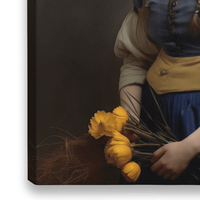 Portrait d'une jeune fille hollandaise en robe médiévale avec des tulipes jaunes