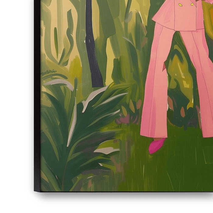 Cette œuvre d'art représente un duo énergique, un homme et une femme vêtus de costumes roses assortis et de chapeaux orange, entourés de palmiers et d'un ciel rose. Leurs poses puissantes et les détails subtils de leurs vêtements soulignent leur assurance et leur style. Le style est partout. Avec cette image, nous voulions capturer le pouvoir de la collaboration, croire en sa propre force et aller au bout de ses propres ambitions. L'atmosphère énergique et puissante invite le spectateur à embrasser sa propre force et sa confiance en soi. L'utilisation de couleurs vives et de lignes épurées crée une image dynamique et inspirante. Cette œuvre est parfaite pour les espaces qui veulent faire une déclaration de force et de collaboration, idéale pour les intérieurs modernes et colorés. Elle nous rappelle que la coopération et la synergie nous rendent plus forts, et ajoute une touche de style et de force à tout environnement.