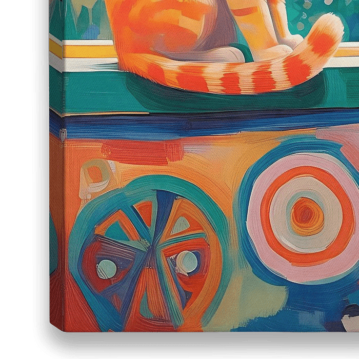 Brighten up any room with this delightful cat-themed design, perfect for adding a touch of whimsy to your home. Featuring playful cats set against a colorful background of geometric shapes, this artwork brings a lively and joyful ambiance. Ideal for cat lovers and those seeking a fun, artistic touch, it’s a perfect choice for living…