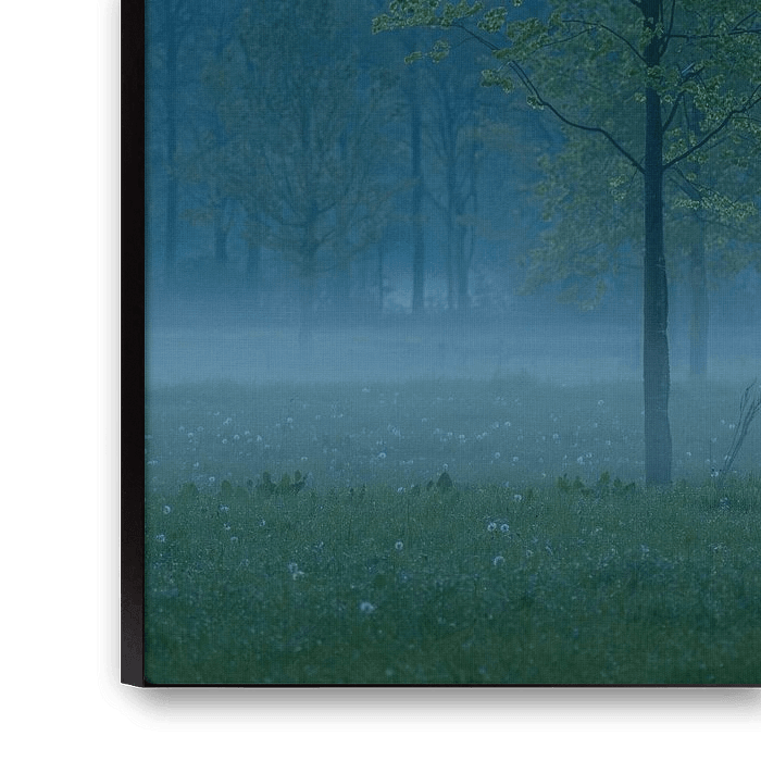Un jeune arbre se dresse solitairement dans le brouillard dense d'une soirée d'été humide. La faible lumière de la nuit qui approche et l'air doux et humide créent une atmosphère mystérieuse, presque onirique. Cette scène capture le silence et la fragilité de la nature, parfaite pour ceux qui aiment les moments contemplatifs et intimes.