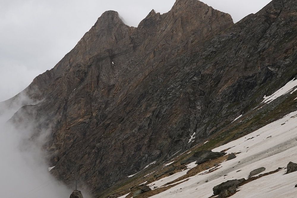 Quelque part, dans les montagnes. Les traîtres plaques de neige et les plaques de brouillard rendaient l'ensemble très beau. S'asseoir sur un rocher et regarder ce qui passe.