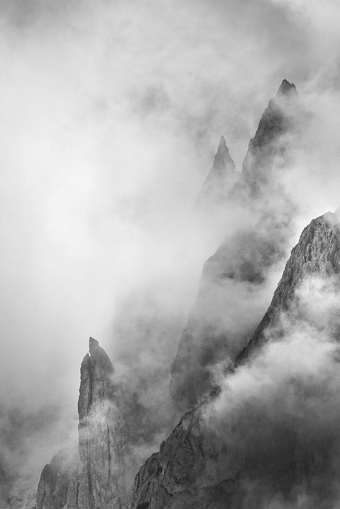 Les sommets des Dolomites sont enveloppés de nuages menaçants.