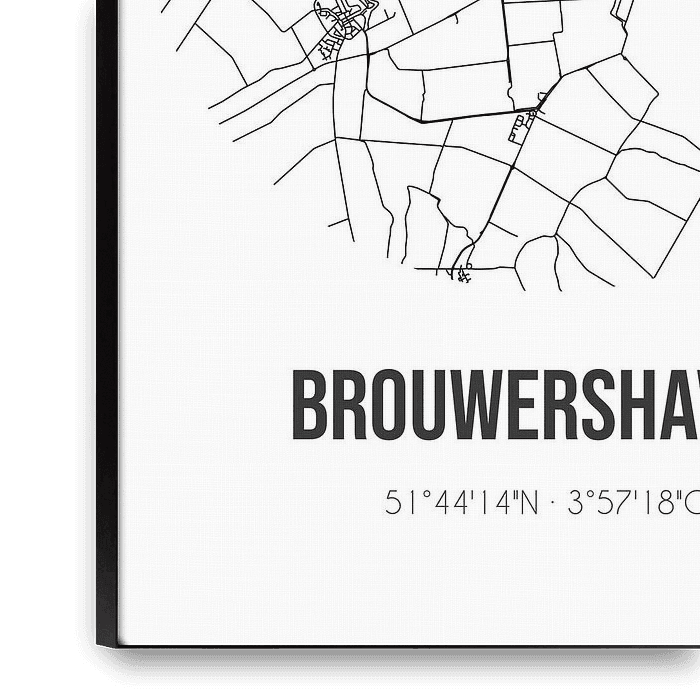 Acheter ce illustration Brouwershaven (Zeeland) | Carte | Noir et Blanc par Affiches de lieux sur toile, aluminium, ArtFrame ou photographie (encadrée), impression d'art en haute qualité et tout format.