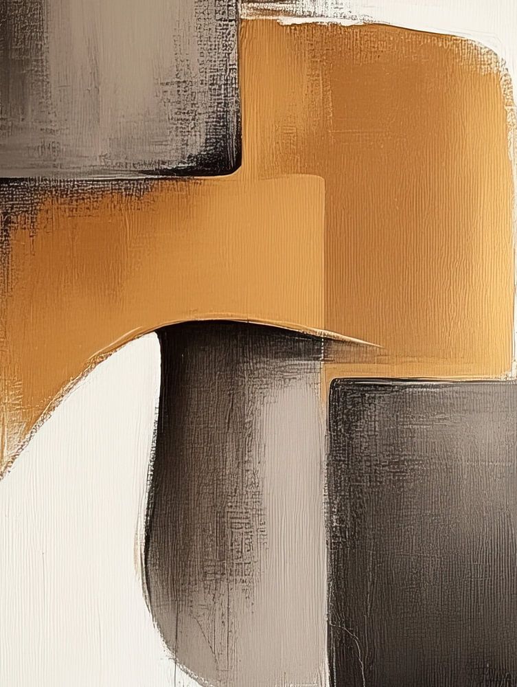 Détails : abstrait, art, peinture, brun, gris, jaune ocre, texture, superposition, moderne, dynamique