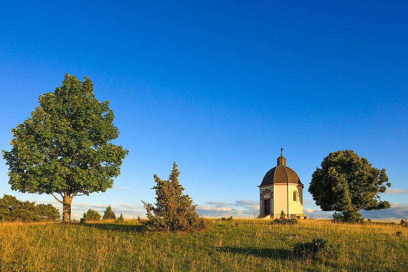 Achetez cette photo Bruyère à genévrier "Alter Berg&quot ; avec Josefskapelle près de Böttingen dans le parc naturel du Haut-Danube par BlattArt - Christine Horn sur toile, aluminium, ArtFrame ou photographie (encadrée), impression d'art en haute qualité et tout format.