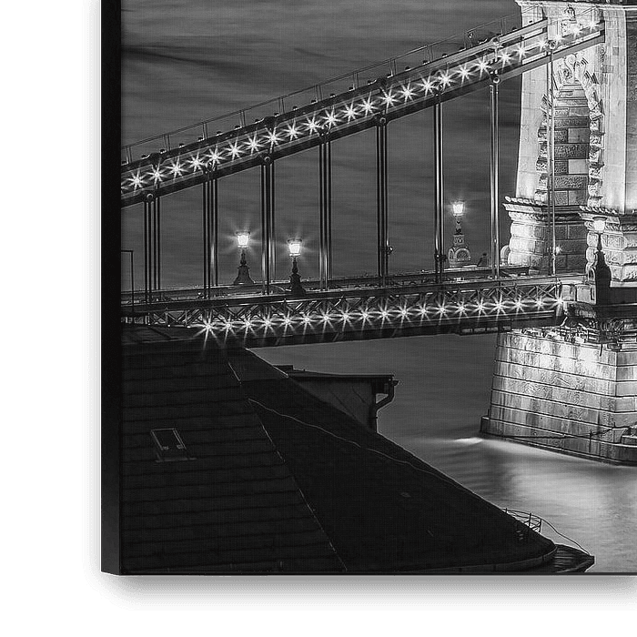 Budapest Skyline - Le bâtiment du Parlement hongrois et le pont des chaînes en noir et blanc