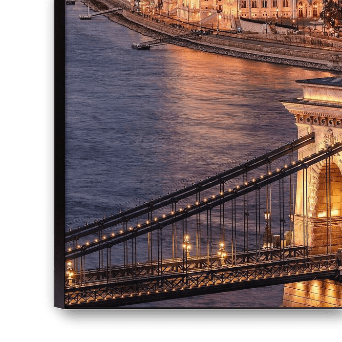 Au premier plan, on voit un pilier du célèbre Pont des Chaînes de Budapest.