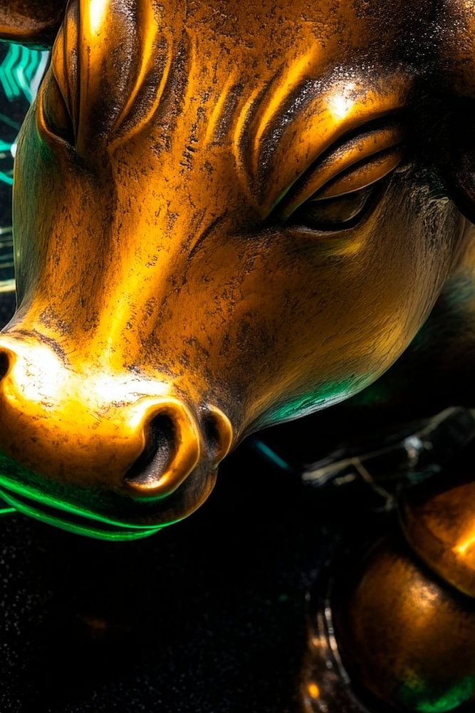 Un taureau doré et puissant se dresse fièrement au premier plan, symbolisant la force et l'essor. Entourée d'un arrière-plan numérique futuriste, l'image vise à capturer le dynamisme du monde de la cryptographie. Parfait pour un bureau moderne, il inspire l'investissement et l'innovation et apporte une touche d'énergie financière à la…