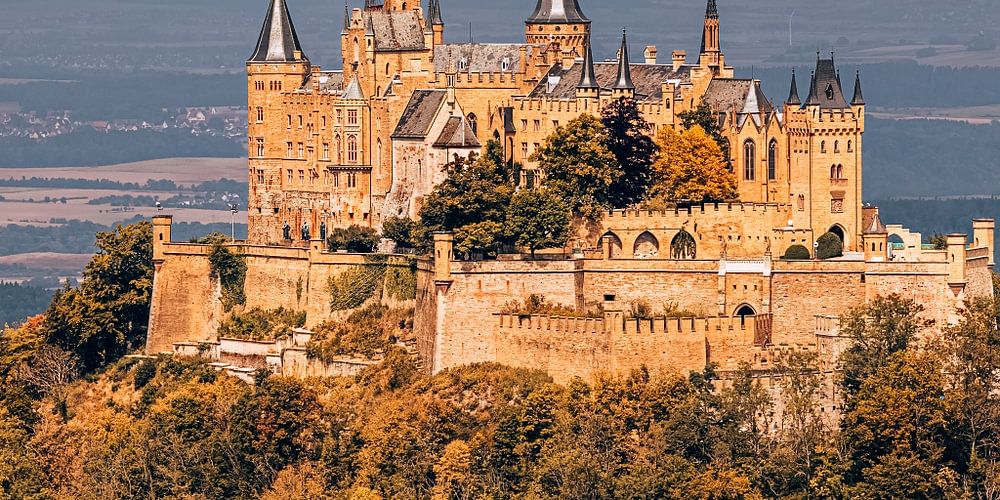 Une photo au format 2x1 du Burg Hohenzollern, vu depuis le Zellerhorn Gipfel.