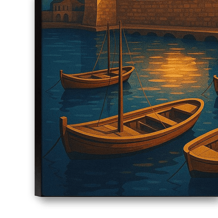 Plongez dans l'histoire dorée de la Méditerranée avec cette illustration époustouflante de Byblos (Jbeil), au Liban. Byblos, l'une des plus anciennes villes du monde habitées sans interruption, est représentée ici dans un style Art déco étonnant. L'œuvre d'art montre la citadelle médiévale emblématique qui monte la garde sur le port…