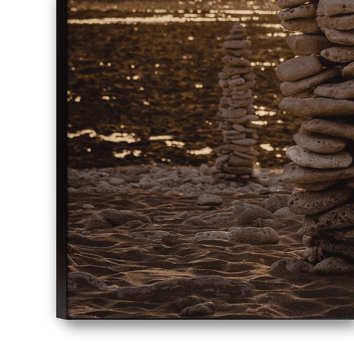 Ces hommes de pierre sont faits de pierre naturelle et se tenaient magnifiquement sur la plage au coucher du soleil.