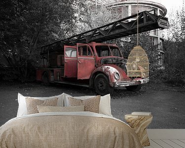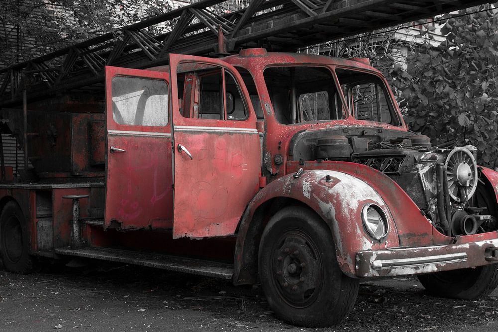 Sur un terrain désert, il y a aussi un camion de pompiers déserté.