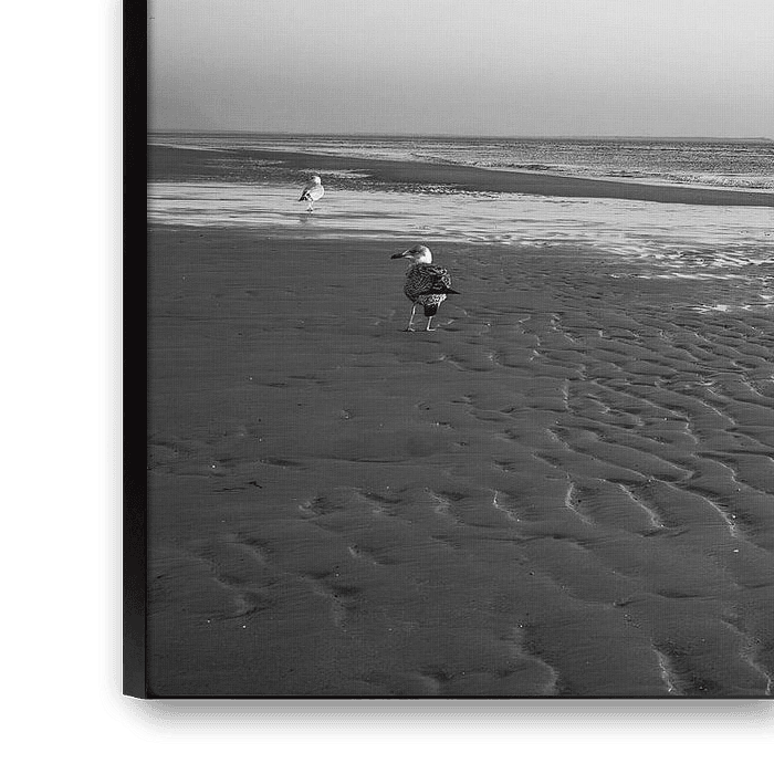 Cette photographie en noir et blanc prise à Flushing montre un cargo glissant silencieusement à l'horizon, tandis qu'au premier plan, une bouée usée par les intempéries repose sur le sable de la marée. La composition associe la puissance industrielle et le calme naturel dans une image équilibrée. Les mouettes se déplacent dans le paysage, ajoutant des détails vibrants à la scène. L'absence de couleur souligne la texture, le rythme et le contraste entre l'homme et la nature le long de la côte néerlandaise.