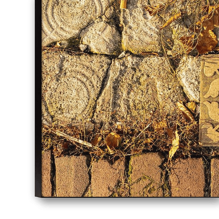 Rien n'est permanent, tout est sujet à la décomposition, mais quelles belles compositions cela peut donner. Mon regard s'est arrêté sur ce trottoir avec ses carreaux d'aspect oriental dans un intérieur brun-orange. Il existe une autre image de ce type, mais légèrement différente : Carreaux de trottoir 1. Il est agréable de les accrocher côte à côte sur le mur. Cela s'inscrit parfaitement dans la tendance Colourful Camel. On s'imagine quelque part dans un pays arabe avec cette image au mur.