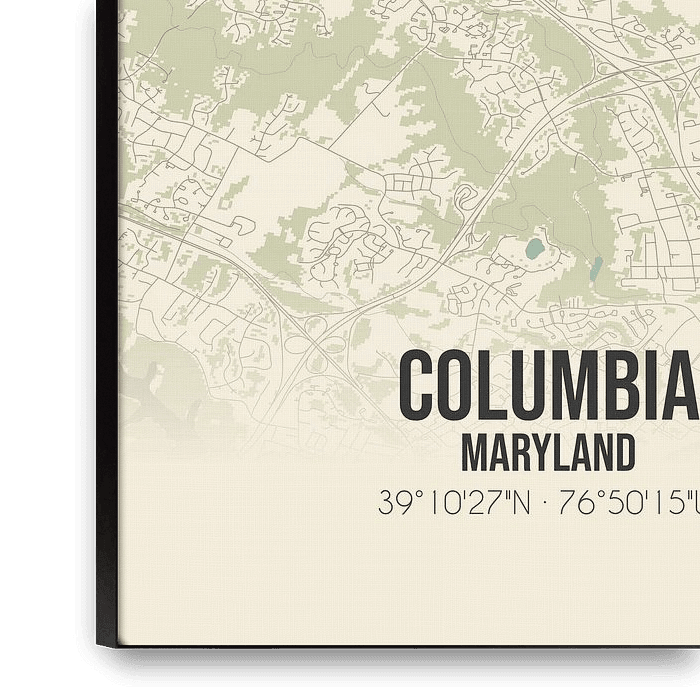 Nostalgie et aventure vont de pair avec cette carte vintage de Columbia, Maryland. La carte vous emmène dans un voyage à travers le temps et vous fait découvrir la polyvalence de ce charmant endroit, situé aux États-Unis.