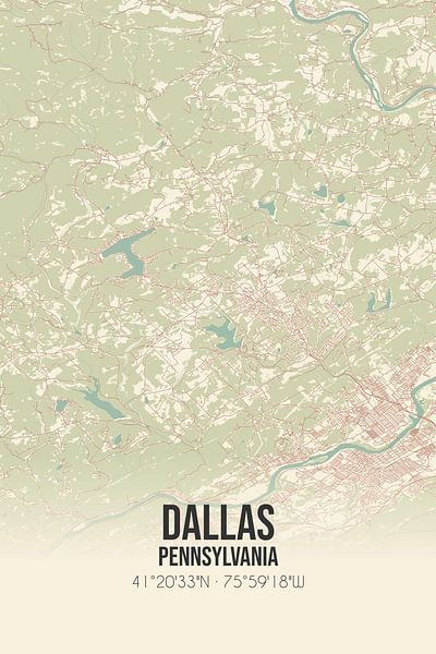 Carte ancienne de Dallas (Pennsylvanie), USA. par Affiches de lieux