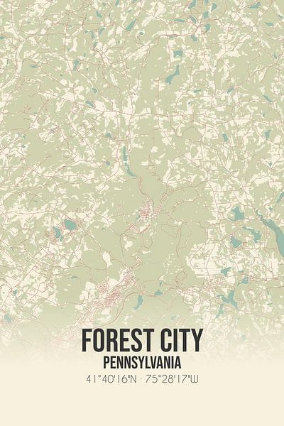 Acheter ce illustration Carte ancienne de Forest City (Pennsylvanie), USA. par Affiches de lieux sur toile, aluminium, ArtFrame ou photographie (encadrée), impression d'art en haute qualité et tout format.