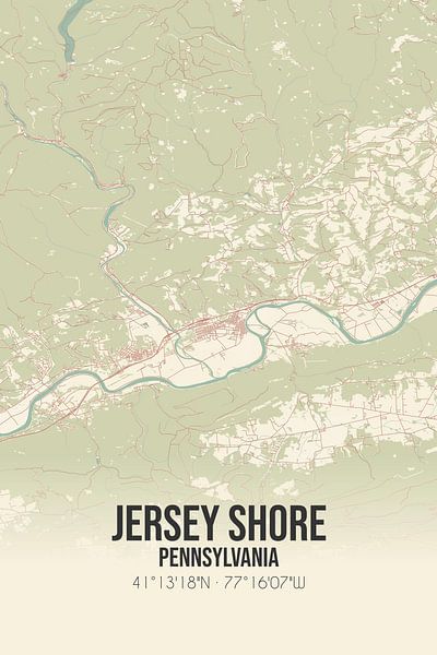 Acheter ce illustration Carte ancienne de Jersey Shore (Pennsylvanie), Etats-Unis. par Affiches de lieux sur toile, aluminium, ArtFrame ou photographie (encadrée), impression d'art en haute qualité et tout format.