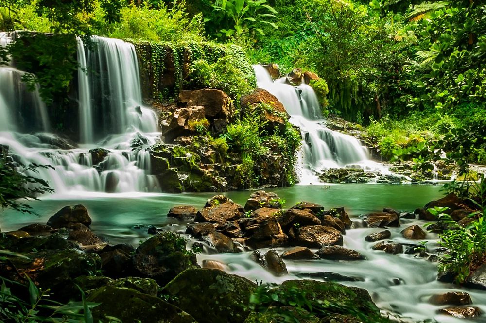 C'est certainement l'une des plus belles chutes d'eau au monde. Quel cadre magnifique et magique. Le décor est plus vert que vert, une véritable jungle. La cascade est large et l'eau bleue azur s'écoule entre des rochers bruns et une belle végétation.