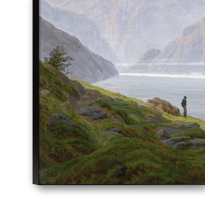 Achetez Caspar David Friedrich, Paysage avec lac de montagne, matinée en tant que reproduction sur toile, aluminium, ArtFrame ou photographie (encadrée), impression d'art en haute qualité et tout format