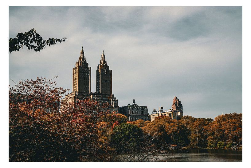 L'image montre une vue de San Remo, le fameux bâtiment de 1930, la vue est de Central Park, près du Bow Bridge.