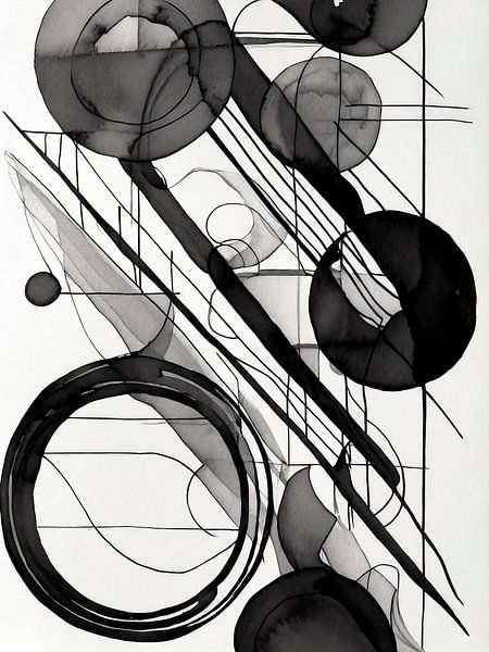 Cercles comme émotion abstraite à l'encre de Chine en noir et blanc