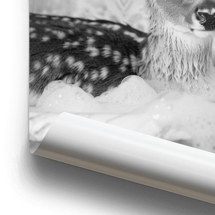 Ce charmant tableau de salle de bain représente un cerf majestueux se reposant dans sa baignoire et confère à votre salle de bain une atmosphère très particulière. La photographie en noir et blanc confère à l'image une élégance intemporelle et met en valeur les détails de la scène, tout en apportant une touche charmante et unique à la…