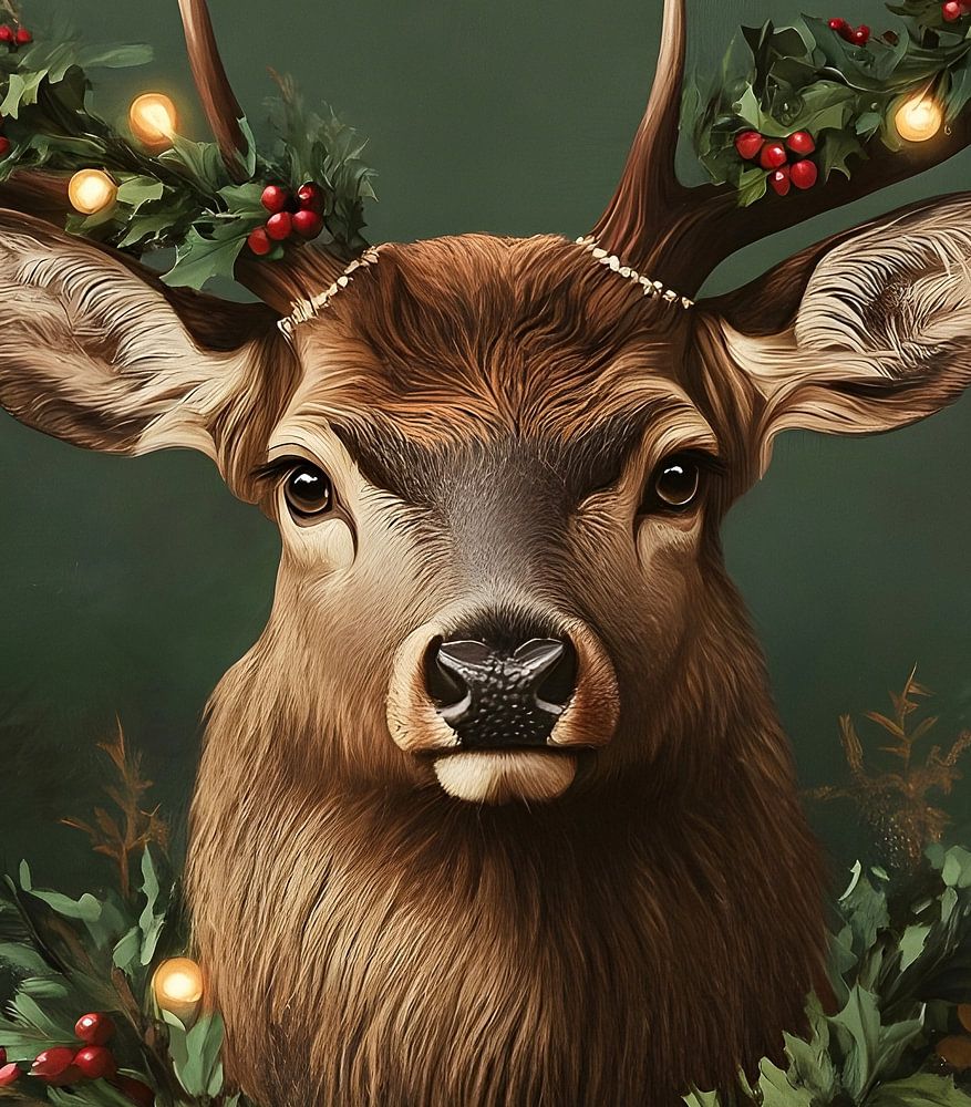 Acheter ce tableau Cerf de Noël avec lumières par But First Framing sur toile, aluminium, ArtFrame ou photographie (encadrée), impression d'art en haute qualité et tout format.