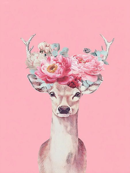 Acheter ce tableau Cerf fleuri sur fond rose par Mosaic Dialogue sur toile, aluminium, ArtFrame ou photographie (encadrée), impression d'art en haute qualité et tout format.