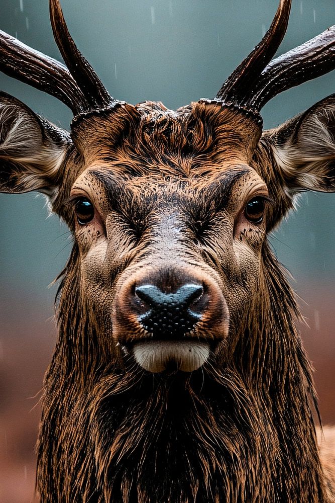 Cette image impressionnante montre un cerf majestueux capturé dans un cadre serein et pluvieux. Des gouttes glissent sur ses bois majestueux tandis que l'arrière-plan brumeux ajoute une atmosphère calme et mystérieuse. Ce motif, qui respire la force et l'élégance, est parfait pour les amoureux de la nature et de la vie sauvage. Le niveau de détail et les couleurs naturelles en font un complément idéal pour tout intérieur, qu'il s'agisse d'un salon moderne ou d'un bureau plein d'ambiance.