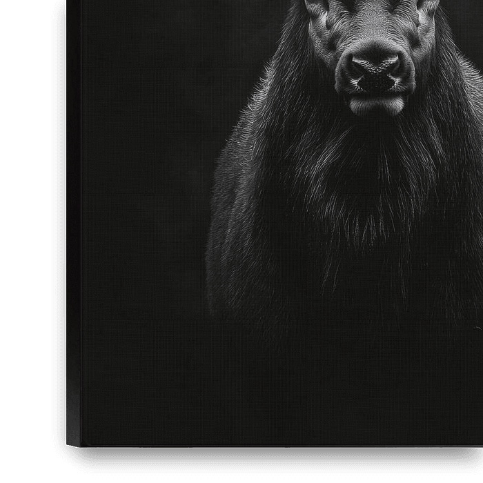 Une créature majestueuse qui perce l'obscurité avec une présence puissante et des bois impressionnants. Le décor monochrome renforce l'aura mystique, tandis que les yeux pénétrants captivent immédiatement. Idéal pour un salon moderne ou un mur de bureau audacieux, il apporte à la fois calme et force à n'importe quelle pièce.