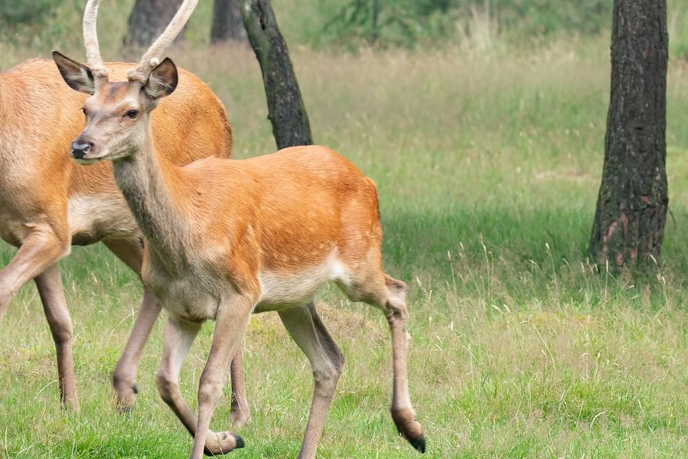 Achetez cette œuvre d'art de paysage Cerfs rouges dans le Veluwe par Gert Hilbink sur toile, aluminium, ArtFrame ou photographie (encadrée), impression d'art en haute qualité et tout format.