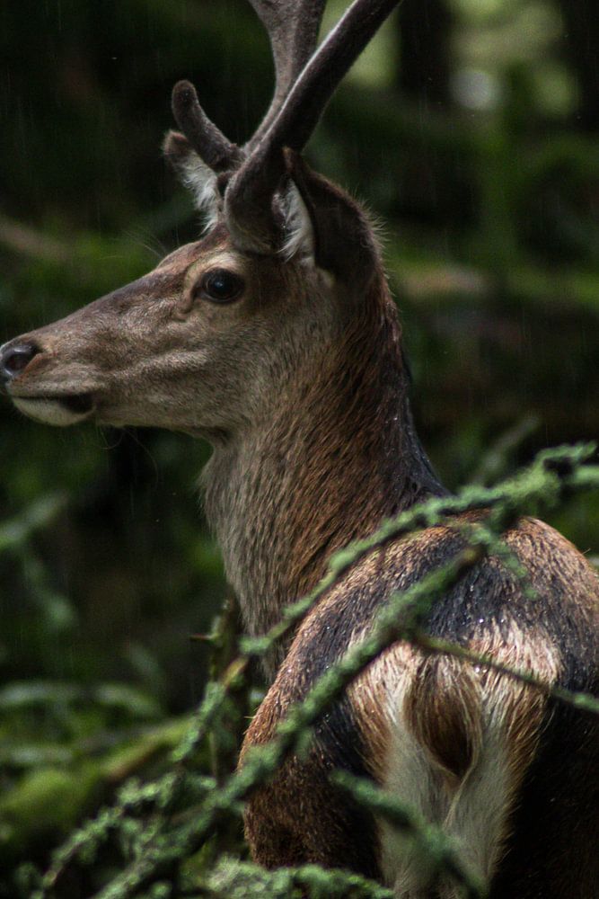 Red Deer regarde profondément dans l'objectif de mon appareil photo. Photo avec objectif Canon 6D + Tamron 300mm.