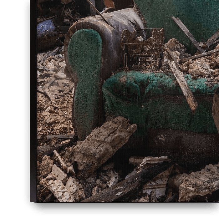 Ce château était autrefois un lieu de luxe et de grandeur. Après un bord, il a été abandonné et ce sont les petits détails, comme cette belle chaise, qui nous donnent un aperçu du luxe du passé.
