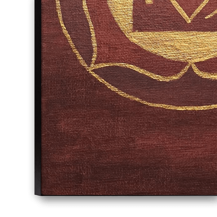 Des tons rouges chauds et des nuances terreuses constituent la base de cette œuvre et symbolisent la force vitale, la stabilité et la sécurité. Des accents dorés rappellent l'énergie divine qui repose en toute chose et nous porte en douceur à travers la vie.