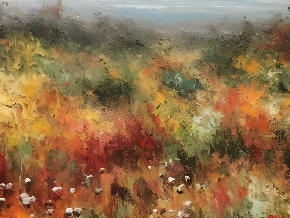 Impression d'un champ de fleurs sauvages en pleine floraison. Inspiré par Monet et Pierre-August Renoir. Cette œuvre d'art convient aux espaces ayant un thème rural, coloré, naturel et joyeux.