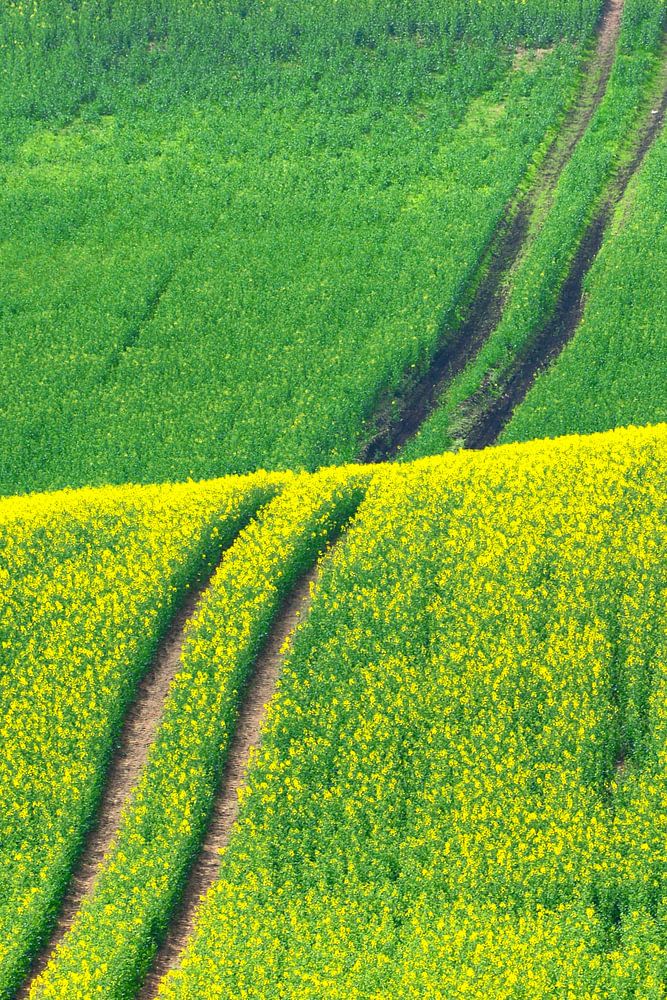 Champ de viol au Gömnitzer Turm à Ostholstein, Schleswig-Holstein, Allemagne.