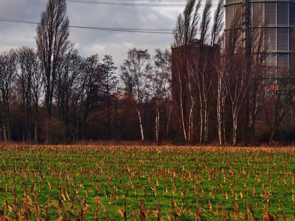 Achetez cette photo Champ et gazomètre par Edgar Schermaul sur toile, aluminium, ArtFrame ou photographie (encadrée), impression d'art en haute qualité et tout format.