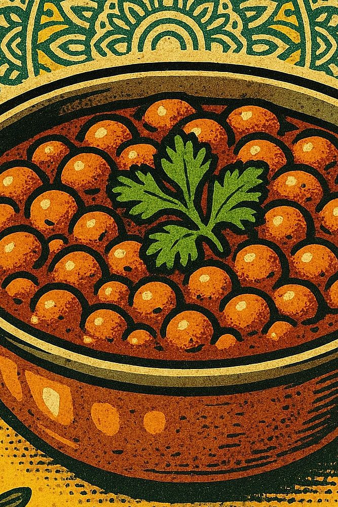 Hommage vibrant à l'un des plats végétariens les plus appréciés de l'Inde, cette œuvre d'art Chana Masala capture la profondeur de la saveur et de la tradition qui se cache derrière l'humble curry de pois chiches. La composition rayonne de nuances de jaune moutarde et de vert forêt, enrichies de délicats motifs de mandala et d'épices flottantes - clous de girofle, cardamome et anis - symbolisant le parfum et la vitalité. Avec sa texture rétro imprimée à la main et sa symétrie équilibrée, il évoque les affiches classiques de la cuisine de rue indienne des décennies passées. Cette pièce ajoute de la chaleur et de l'authenticité à tout intérieur, reflétant à la fois l'héritage culinaire et l'artisanat artistique. Un mélange parfait de nostalgie et de célébration culturelle, idéal pour ceux qui apprécient la beauté des saveurs quotidiennes transformées en art intemporel.