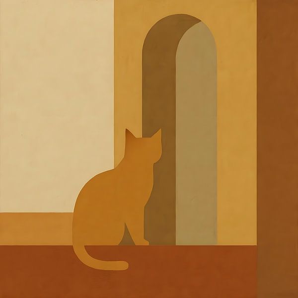 Découvrez le pouvoir serein d'une œuvre abstraite minimaliste dans laquelle un chat prend vie dans des tons chauds.