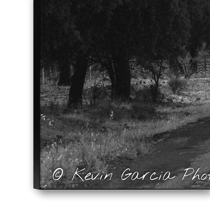 Magnifique photographie en noir et blanc d'une route traversant un paysage d'arbres jusqu'à une imposante formation montagneuse. La lumière et les ombres sont magnifiquement déployées, un vrai tableau ! #Photographie noir et blanc #paysage #route #montagne #repos.